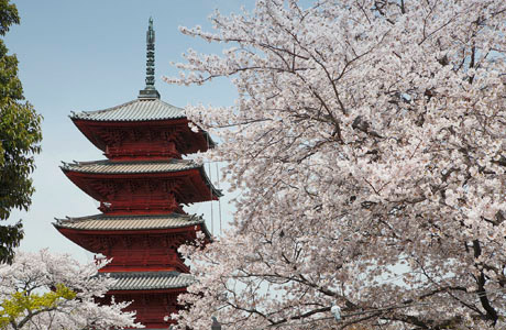 O pagode de cinco pisos foi construído em 1608. Ele está localizado justamente dentro da porta na Niomon à direita. Tem 29,4 metros de altura e possui uma viga octogonal com um diâmetro de 41 centímetros partindo do segundo andar até o topo para equilibrar a estrutura. Foi construído para resistir a um terremoto de magnitude sete e é o mais antigo pagode de cinco pisos de Tóquio.