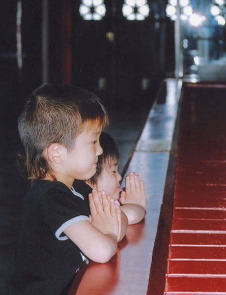 La práctica más importante en su casa son los servicios matutinos y vespertinos. En el servicio matutino, rezaremos al Buda y a Nichiren Shonin por la seguridad de nuestra familia y por su mejor esfuerzo en su trabajo y escuela, haciendo buenas acciones según el Dharma y contribuyendo a otras personas en la comunidad. En el servicio vespertino, mostramos nuestro agradecimiento por la seguridad de la familia durante ese día.